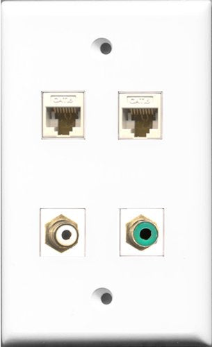 RiteAV 1 Port RCA White and 1 Port RCA Green 2 Port Cat6 Ethernet White Wall Plate