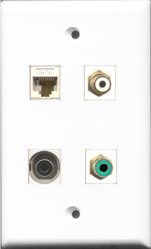 RiteAV 1 Port RCA White and 1 Port RCA Green and 1 Port 3.5mm and 1 Port Cat6 Ethernet White Wall Plate