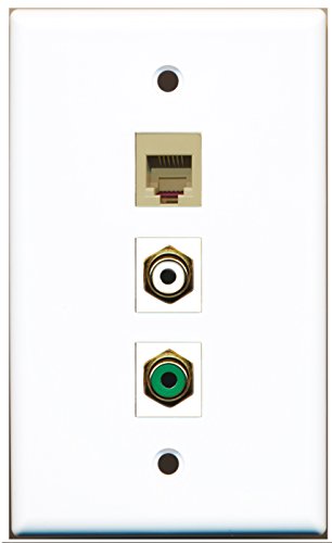 RiteAV - 1 Port RCA White and 1 Port RCA Green and 1 Port Phone RJ11 RJ12 Beige Wall Plate