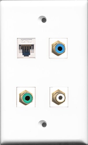RiteAV - and 1 Port RCA White and 1 Port RCA Green and 1 Port RCA Blue and 1 Port Cat5e Ethernet White Wall Plate