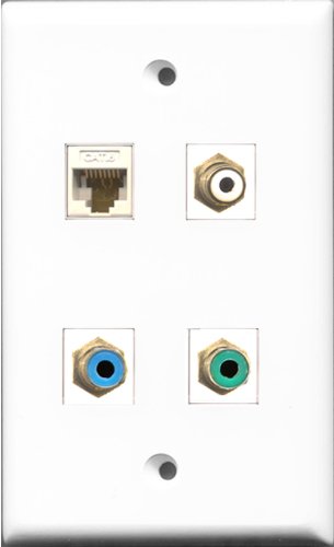 RiteAV 1 Port RCA White and 1 Port RCA Green and 1 Port RCA Blue and 1 Port Cat6 Ethernet White Wall Plate