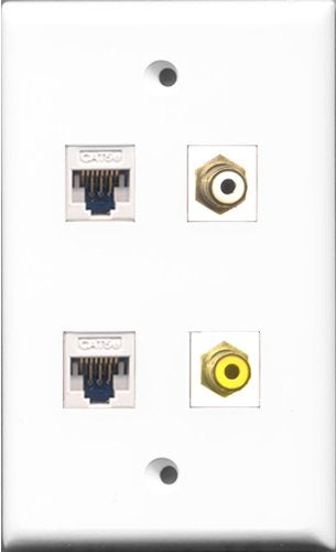 RiteAV 1 Port RCA White and 1 Port RCA Yellow 2 Port Cat5e Ethernet White Wall Plate