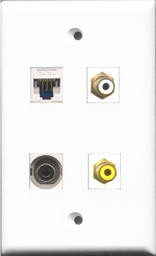RiteAV 1 Port RCA White and 1 Port RCA Yellow and 1 Port 3.5mm and 1 Port Cat5e Ethernet White Wall Plate