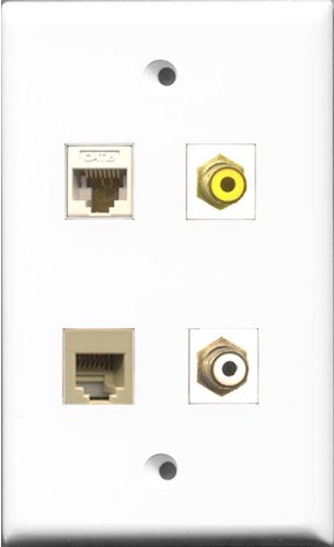 RiteAV 1 Port RCA White and 1 Port RCA Yellow and 1 Port Phone RJ11 RJ12 Beige and 1 Port Cat6 Ethernet White Wall Plate
