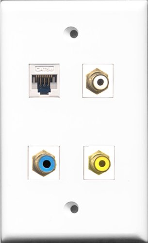 RiteAV 1 Port RCA White and 1 Port RCA Yellow and 1 Port RCA Blue and 1 Port Cat5e Ethernet White Wall Plate