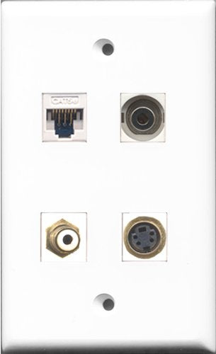RiteAV - 1 Port RCA White and 1 Port S-Video and 1 Port 3.5mm and 1 Port Cat5e Ethernet White Wall Plate