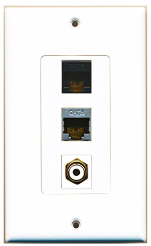 RiteAV - 1 Port RCA White and 1 Port Shielded Cat6 Ethernet and 1 Port Cat6 Ethernet Black Decorative Wall Plate Decorative