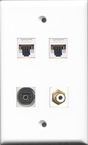 RiteAV - 1 Port RCA White and 1 Port Toslink 2 Port Cat5e Ethernet White Wall Plate