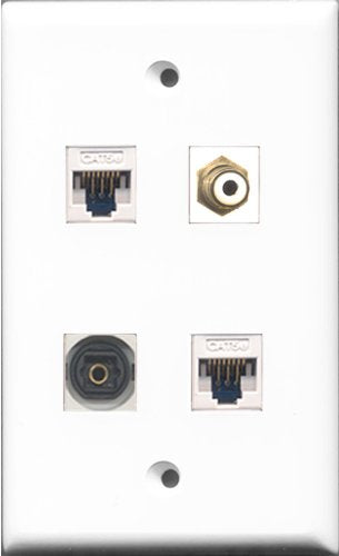 RiteAV 1 Port RCA White and 1 Port Toslink 2 Port Cat5e Ethernet White Wall Plate