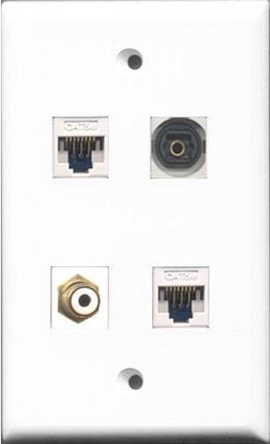 RiteAV 1 Port RCA White and 1 Port Toslink 2 Port Cat5e Ethernet White Wall Plate