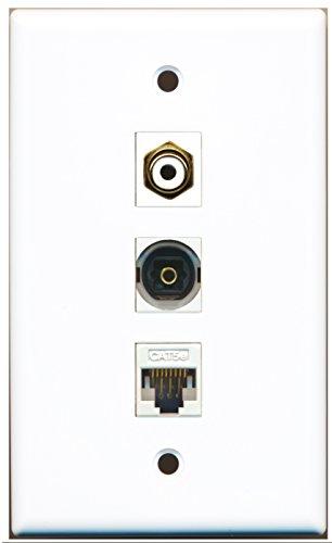 RiteAV - 1 Port RCA White and 1 Port Toslink Digital Audio and 1 Port Cat5e Ethernet White Wall Plate