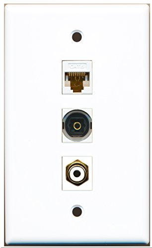 RiteAV - 1 Port RCA White and 1 Port Toslink and 1 Port Cat6 Ethernet White Wall Plate