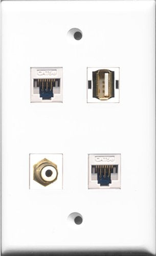 RiteAV 1 Port RCA White and 1 Port USB A-A 2 Port Cat5e Ethernet White Wall Plate