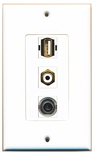 RiteAV - 1 Port RCA White and 1 Port USB A-A and 1 Port 3.5mm Decorative Wall Plate Decorative