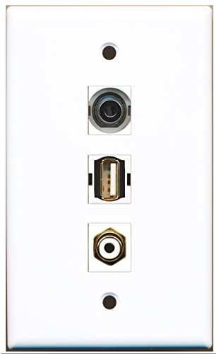 RiteAV - 1 Port RCA White and 1 Port USB A-A and 1 Port 3.5mm Wall Plate