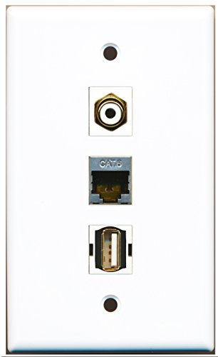 RiteAV - 1 Port RCA White and 1 Port USB A-A and 1 Port Shielded Cat6 Ethernet Wall Plate