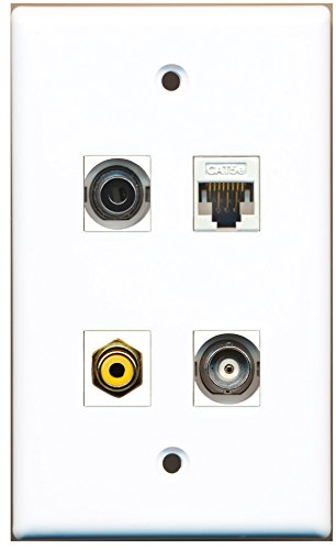 RiteAV - 1 Port RCA Yellow 1 Port 3.5mm 1 Port BNC 1 Port Cat5e Ethernet White Wall Plate