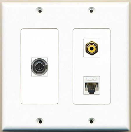 RiteAV - 1 Port RCA Yellow 1 Port 3.5mm 1 Port Cat5e Ethernet White - 2 Gang Wall Plate