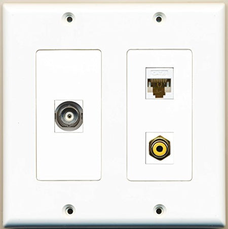 RiteAV - 1 Port RCA Yellow 1 Port BNC 1 Port Cat6 Ethernet White - 2 Gang Wall Plate