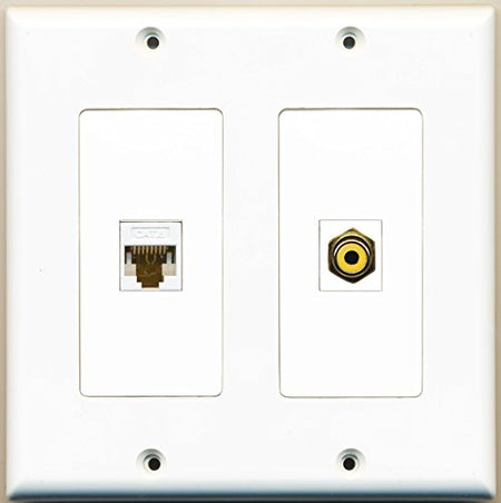 RiteAV - 1 Port RCA Yellow 1 Port Cat6 Ethernet White - Dual Gang Wall Plate