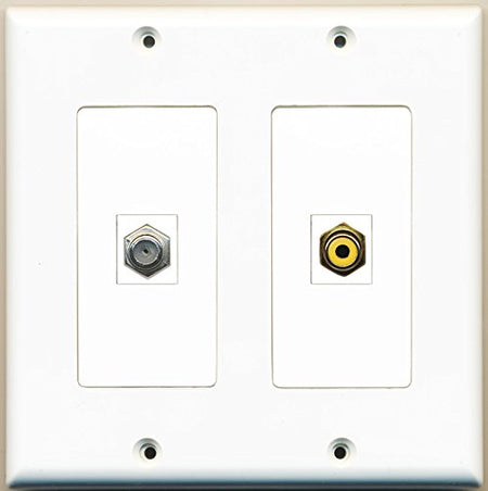 RiteAV - 1 Port RCA Yellow 1 Port Coax Cable TV- F-Type - Dual Gang Wall Plate
