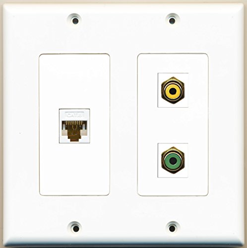 RiteAV - 1 Port RCA Yellow 1 Port RCA Green 1 Port Cat6 Ethernet White - 2 Gang Wall Plate