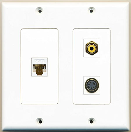 RiteAV - 1 Port RCA Yellow 1 Port S-Video 1 Port Cat6 Ethernet White - 2 Gang Wall Plate