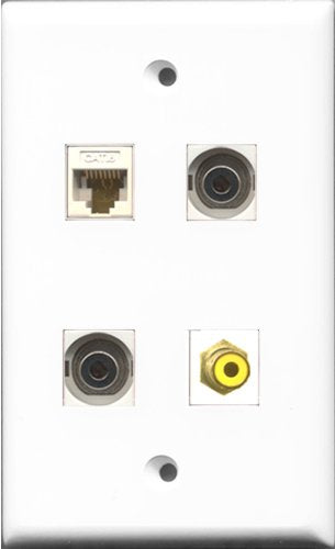 RiteAV 1 Port RCA Yellow 2 Port 3.5mm and 1 Port Cat6 Ethernet White Wall Plate