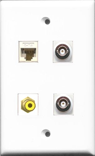 RiteAV 1 Port RCA Yellow 2 Port BNC and 1 Port Cat6 Ethernet White Wall Plate