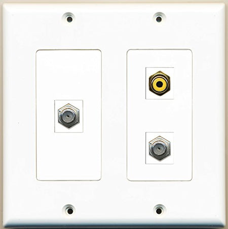 RiteAV - 1 Port RCA Yellow 2 Port Coax Cable TV- F-Type - 2 Gang Wall Plate