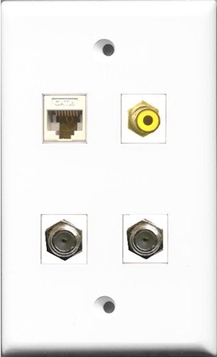 RiteAV 1 Port RCA Yellow 2 Port Coax Cable TV- F-Type and 1 Port Cat6 Ethernet White Wall Plate