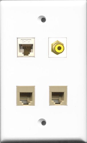 RiteAV 1 Port RCA Yellow 2 Port Phone RJ11 RJ12 Beige and 1 Port Cat6 Ethernet White Wall Plate