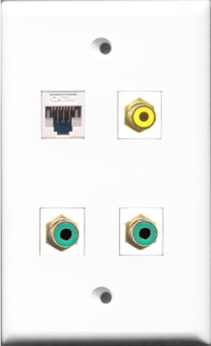 RiteAV 1 Port RCA Yellow 2 Port RCA Green and 1 Port Cat5e Ethernet White Wall Plate
