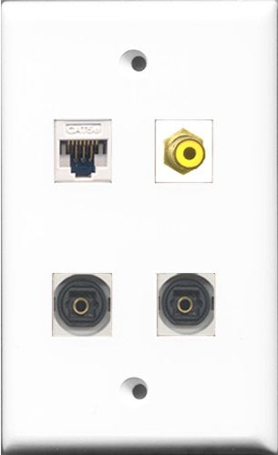 RiteAV 1 Port RCA Yellow 2 Port Toslink and 1 Port Cat5e Ethernet White Wall Plate