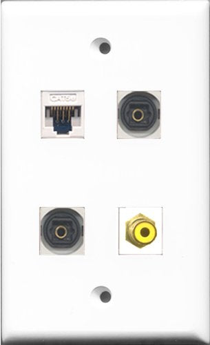 RiteAV 1 Port RCA Yellow 2 Port Toslink and 1 Port Cat5e Ethernet White Wall Plate