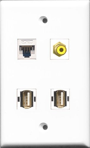 RiteAV 1 Port RCA Yellow 2 Port USB A-A and 1 Port Cat5e Ethernet White Wall Plate