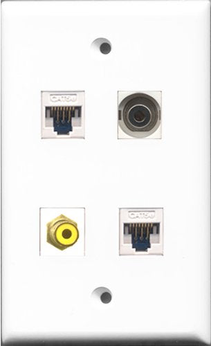 RiteAV - 1 Port RCA Yellow and 1 Port 3.5mm 2 Port Cat5e Ethernet White Wall Plate
