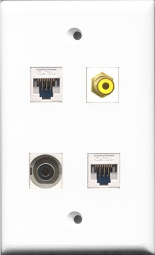 RiteAV 1 Port RCA Yellow and 1 Port 3.5mm 2 Port Cat5e Ethernet White Wall Plate
