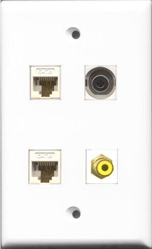 RiteAV 1 Port RCA Yellow and 1 Port 3.5mm 2 Port Cat6 Ethernet White Wall Plate