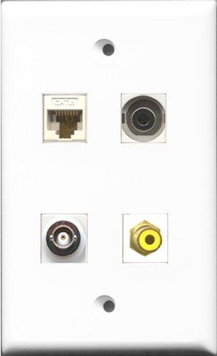 RiteAV 1 Port RCA Yellow and 1 Port 3.5mm and 1 Port BNC and 1 Port Cat6 Ethernet White Wall Plate