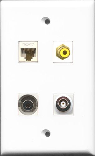 RiteAV 1 Port RCA Yellow and 1 Port 3.5mm and 1 Port BNC and 1 Port Cat6 Ethernet White Wall Plate