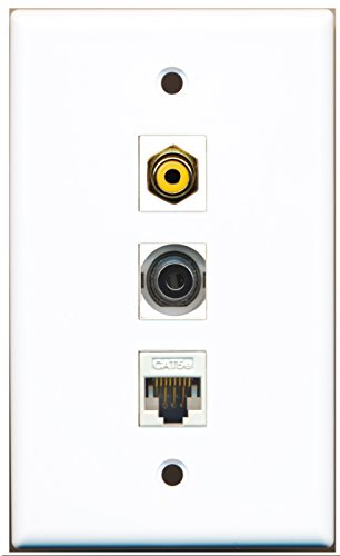 RiteAV - 1 Port RCA Yellow and 1 Port 3.5mm and 1 Port Cat5e Ethernet White Wall Plate