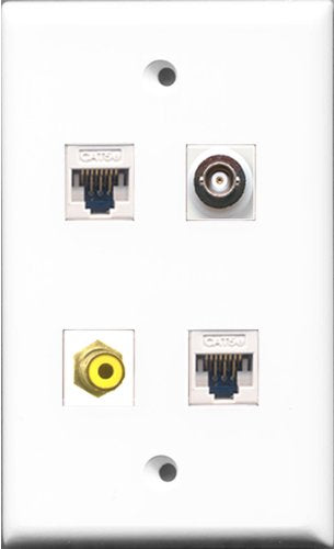 RiteAV - 1 Port RCA Yellow and 1 Port BNC 2 Port Cat5e Ethernet White Wall Plate
