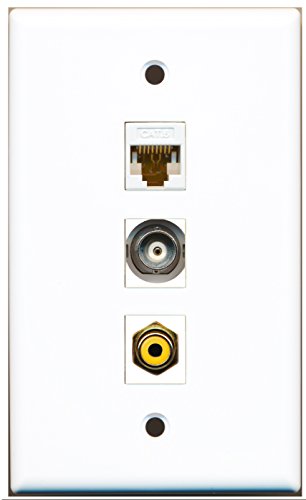 RiteAV - 1 Port RCA Yellow and 1 Port BNC and 1 Port Cat6 Ethernet White Wall Plate