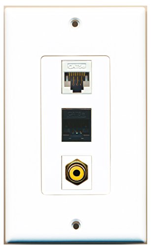RiteAV - 1 Port RCA Yellow and 1 Port Cat5e Ethernet White and 1 Port Cat5e Ethernet Black Wall Plate Decorative