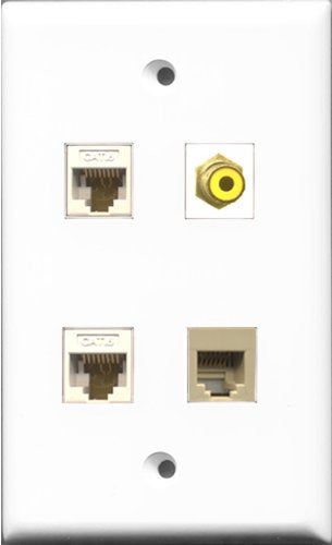 RiteAV 1 Port RCA Yellow and 1 Port Phone RJ11 RJ12 Beige 2 Port Cat6 Ethernet White Wall Plate