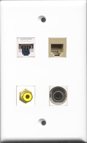 RiteAV 1 Port RCA Yellow and 1 Port Phone RJ11 RJ12 Beige and 1 Port 3.5mm and 1 Port Cat5e Ethernet White Wall Plate