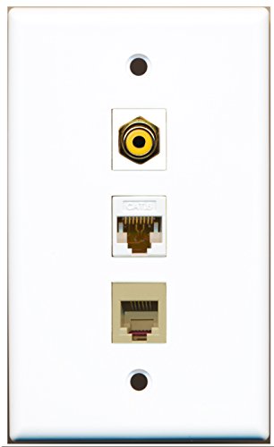 RiteAV - 1 Port RCA Yellow and 1 Port Phone RJ11 RJ12 Beige and 1 Port Cat6 Ethernet White Wall Plate