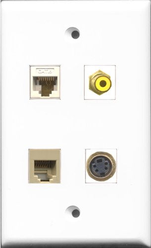 RiteAV 1 Port RCA Yellow and 1 Port Phone RJ11 RJ12 Beige and 1 Port S-Video and 1 Port Cat6 Ethernet White Wall Plate