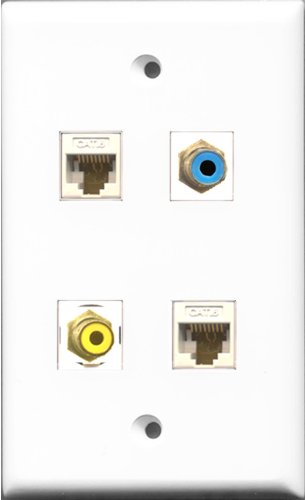 RiteAV 1 Port RCA Yellow and 1 Port RCA Blue 2 Port Cat6 Ethernet White Wall Plate